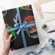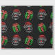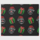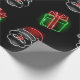 Cute and fun retro bright groovy neon light Santas and present gift Christmas wrapping paper on a black backgound.