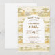 A soft and charming safari-themed design featuring gentle watercolor animals surrounded by delicate wildflowers and botanical greenery. Sweet lions, giraffes, elephants, and zebras create a whimsical storybook scene in warm neutral tones of beige, cream, and soft sage. The elegant arch layout and botanical details give this design a timeless and refined look, perfect for celebrating a little one’s special first birthday.