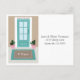 With a door and doormat, personalize this postcard to inform family, friends, and business associates of your new address. The turquoise front door is centred between 2 pink planters, while the brown and turquoise double layered doormats feature the family's name.