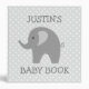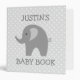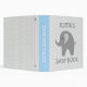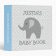 Cute new baby binder with blue and grey elephant. Personalized blue and grey baby book with zoo animal and custom text. Cute white polka dots pattern design for girl or boy. Customizable background colour ie pastel pink, soft yellow, grey, light blue, purple etc. Adorable baby illustration for photo album of child, grandchild, granddaughter, grandson etc. Sweet gift idea for baby shower, 1st birthday, pregnancy, new mom or mother to be. Whimsical typography. Ring binders available in 1 1.5 and 2 inch thickness.