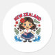Cute New Zealand Girl With Fern And Waves Dor Kids Classic Round Sticker