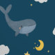 Cute Nighttime Sky Clouds Moon Whale Kids Nursery Wallpaper
