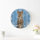 Cute Nosy Tabby Cat Kitten Sitting in a Blue Fence Large Clock