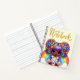 This charming design features a sweet chibi girl with soft rainbow accents, surrounded by dreamy hues and joyful vibes. The word "Notebook" is beautifully scripted in elegant gold calligraphy, adding a touch of sophistication to the playful, kawaii aesthetic.