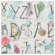 Cute nursery Alphabet kids ABC Illustration Fabric