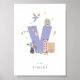Cute Nursery Personalized Alphabet Letter V Poster