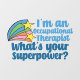 I’m an occupational therapist, what’s your superpower? A funny OT window cling for someone in the field of occupational therapy. Cute inspirational shooting stars next to the quote.