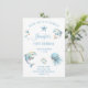 Elegant birthday invitation for children in shades of blue and gold with a theme of sweet dolphins, starfish, and jellyfish, as well as water bubbles. White background. Blue bubble pattern on the back side.