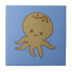 A cute orange cartoon octopus. Faux embroidery print effect applied to the image. Baby animal decorative ceramic tiles. Gift idea for kids.