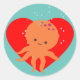 Cute Octopus Cartoon Red Heart Classic Round Sticker