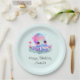 Paper plates with an image of a cute girly octopus with a flower on her head. Big bright eyes and a friendly face.