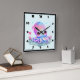 A clock with an image of a cute girly octopus with a flower on her head. Big bright eyes and a friendly face.