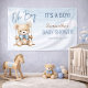 Cute Oh Boy It's A Boy Bear Baby Shower Backdrop Banner