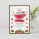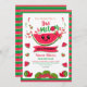 This cute and colourful "one in a Melon" summer fruit watermelon girl's 1st birthday instant digital downloadable invitation. On the front of the card cute smiling cartoon face water melon with ribbons,bow, colourful hearts, water melons with golden pink green stripes on green background. You can change all details and age number by clicking Zazzle's customisation option.