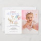 Cute One Silly Goose Photo 1st Birthday Party. Available digitally and printed. Easily personalise the text to your details. A sweet party goose, cake and balloons graphic sets the scene . Replace the sample photo with your own.