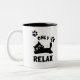 Cute "Only Relax" Cat Silhouette & Paw Prints Min Two-Tone Coffee Mug