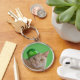 Enjoy using this cute key chain featuring Murphy, our beautiful yellow orange tabby cat with golden eyes, who is sporting a green Irish bowler hat which reads "Happy Shamrock Day!"