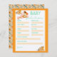 cute orange flowers baby shower predictio. le cutie Baby predictions and advice card
