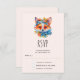 RSVP card with an illustration of an adorable fox portrait with a blue and orange floral crown and collar.