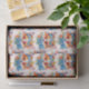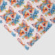 Tissue paper with an illustration of an adorable fox portrait with a blue and orange floral crown and collar.