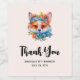 Bottle labels with an illustration of an adorable fox portrait with a blue and orange floral crown and collar.