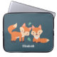 Personalized laptop sleeve with a graphic illustration of 2 orange foxes looking cute and happy.