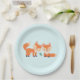 Paper plates with a graphic illustration of 2 orange foxes looking cute and happy.