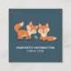 Business cards with a graphic illustration of 2 orange foxes looking cute and happy. Dark green background.
