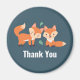 A thank you magnet with a graphic illustration of 2 orange foxes looking cute and happy.