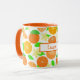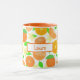 Cute orange fruit mug to bring happiness on your coffee time. Add your name or text, change background colour and enjoy!