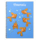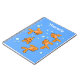 This fun design features of bright orange goldfish on a blue bubbles background. All done in happy cartoon style!