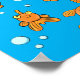 This fun design features of bright orange goldfish on a blue bubbles background. All done in happy cartoon style!