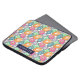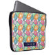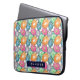 Adorable geode pattern decorate this computer sleeve features an allover pattern of geodes in vibrant shades of pink, emerald green and orange on a white background.