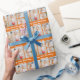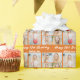 Customize your own orange birthday wrapping paper with a cute 5 photo collage. Add the person's name and year in white script above the five photographs for elegant personalized gifts.