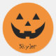 Cute orange Jack o lantern custom name Halloween Classic Round Sticker