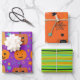Cute Orange Purple Green Fun Halloween Pattern Wrapping Paper Sheet