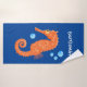 Cute orange seahorse bubbles cartoon illustration bath towel set