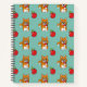 Cute Orange White Cat Eating Red Apple Cartoon Notebook