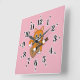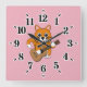 Cute Orange White Cat Playing Guitar Cartoon Square Wall Clock