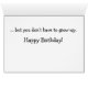 (Image © 2014 Deborah Dalio) – This birthday card features a cute young orangutan peering over a log. The text on the cover says "You can't help getting older ..."" The inside text says "... but you don't have to grow up. Happy Birthday!" All of the text is fully customizable.