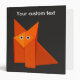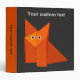 Personalized origami fox binder with a geometric illustration of a cute fox looking at you wondering why you are looking at it, over customizable dark background. This cute fox binder will make a great addition too the school equipment of a kid who loves foxes, origami and paper crafts. This funny cartoon fox was drawn looking at an origami I made. Looking at it I just saw it in ints cuteness, only eyes were missing so I made them from paper, too, and glued them to the cute animal.