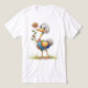 A cute, adorable ostrich in a patchwork style, holding a cheerful flower with a whimsical touch.