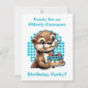 Birthday invitations for a boy's birthday party. Cute cartoon otter in blue and turquoise with birthday cakes, birthday hats with gifts and just being super cute!