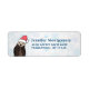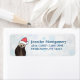 Return address labels with a nature photograph of a cute otter holding his face in his paws. Wearing a red, hand-drawn christmas hat. A snowflake background pattern.