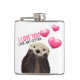 Cute Otter with Pink Hearts Love You Pun Hip Flask