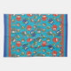 Un amusant Serviette de cuisine ou Serviette de thé, avec un motif de choux mignons en rouge, bleu, vert sur un arrière - plan turquoise. Le motif de hibou était un collage original peint à la main par Judy Adamson.
