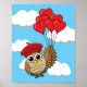 Cute Owl Flying with Heart Balloons Poster