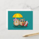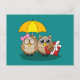 Cute Owl Lovers w/ Umbrella and Red Chocolate Box Holiday Postcard