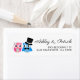 Un adorable étiquette de adresse mariage avec une mariée de hibou rose avec voile et fleurs avec un groom de hibou bleu avec cravate arc et chapeau dessus. Personnalisez ce mignon étiquette de adresse en ajoutant vos noms. Des éléments correspondants sont disponibles.