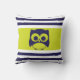 Cute, simple, modern and trendy Owl bird with Stripes print or pattern design for square Throw and Lumbar size Pillows or Cushions. Navy blue, Lime green and white striped colour background. This classic contemporary design will enhance any home decor, living room, sofa, bedroom, office, boat, beach house, university or college dorm room, teenagers, nursery, baby, girls, boys and kids rooms. Choose your size of pillow or cushion. Click the ‘Customize it’ button to personalize your gift by adding your own initials, monogram or name. Choose your own font and colours to make it your own.